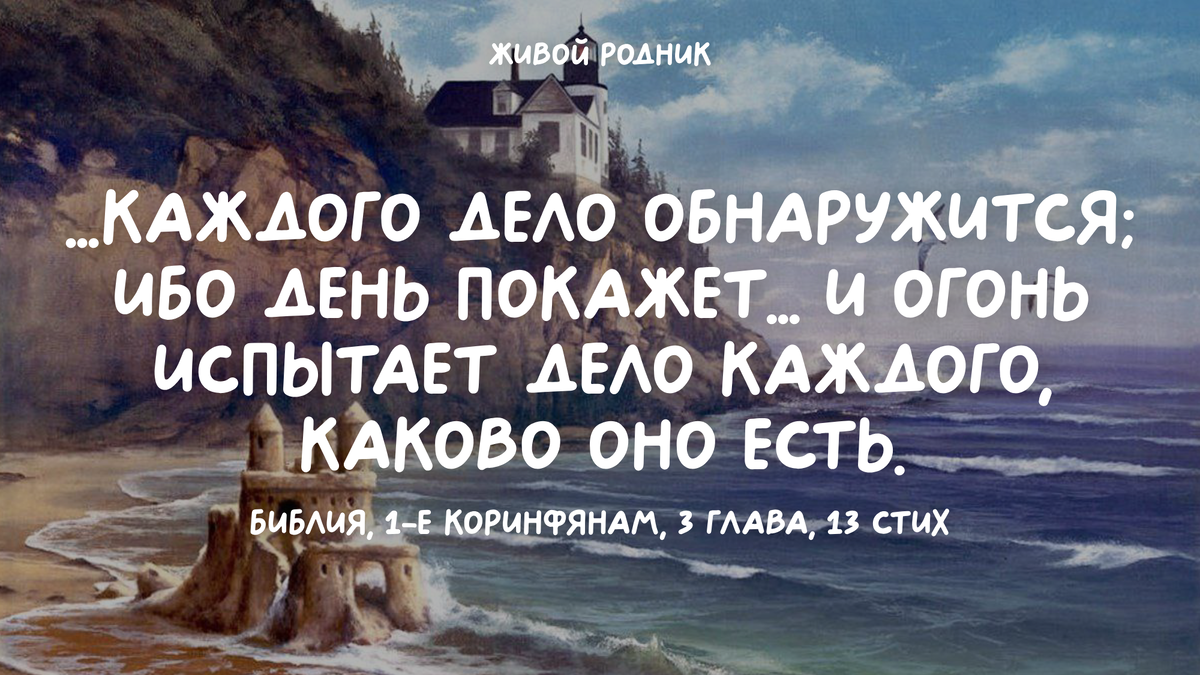 А у кого дело сгорит, тот потерпит урон. Библия, 1-е Коринфянам, 3 глава, 12-15 стихи