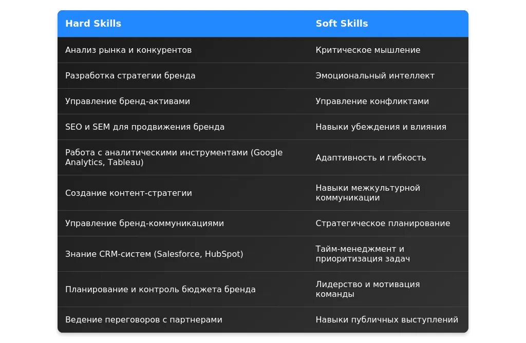 Ключевые слова: "аналитические навыки", "управление проектами", "цифровой маркетинг", "CRM-системы".