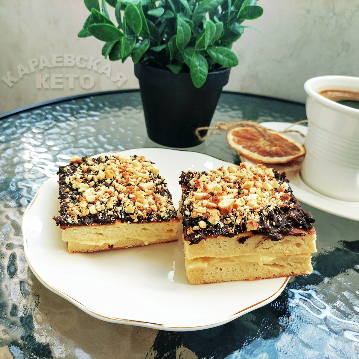 Корж остудить. Готовый корж нарезать на одинаковые прямоугольники размером с пирожное четное количество. Края подравнять. Крошка коржей