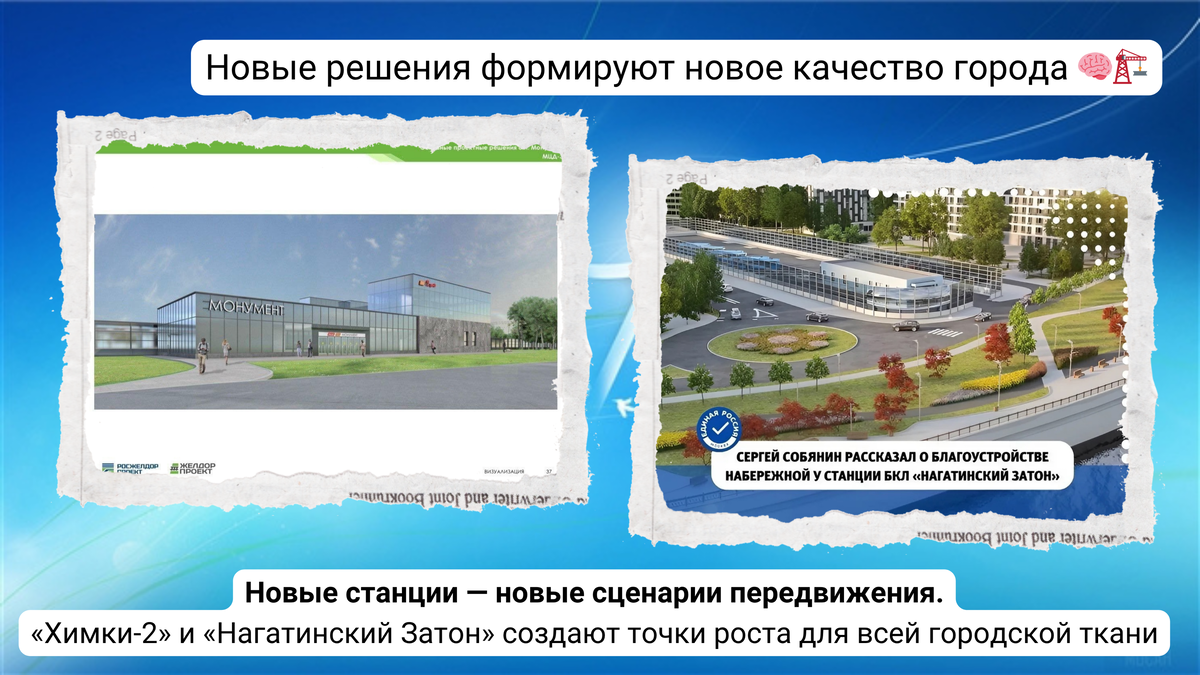 официальные отчеты. Давайте вместе разберемся, что же на самом деле происходит с нашей Москвой. Поехали? Во-первых, представим вам обновленные основные проектные решения по станции 🚊 «Химки-2» («Монумент») МЦД-3. Во-вторых, окинем взором территорию ТПУ у 🚇 станции «Нагатинский Затон» 💍Большой Кольцевой линии. Завершается строительство конечной станции электробусов. Впереди — благоустройство прилегающих территорий и набережной. ----------------------------------------------------------------------------------- Ну вот, друзья, мы и добрались до финала на