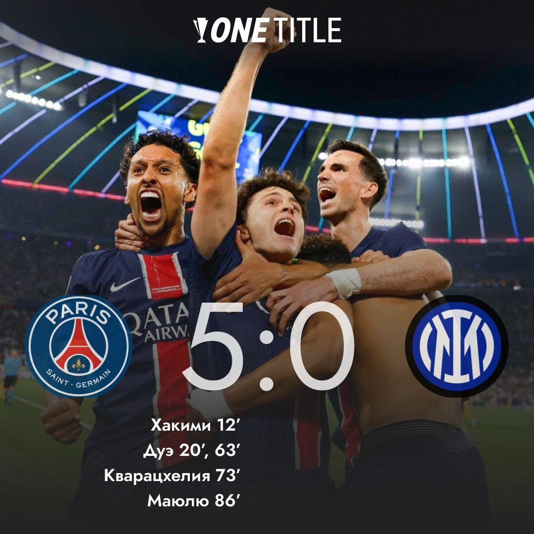 Команда Энрике оформила квадрупл. Парижский клуб забил пять безответных мячей в ворота «Интера». За последние семь лет ни в одном из финальных матчей Лиги чемпионов не забивалось более двух мячей. Финал в Мюнхене завершился со счетом 5:0. @onetitle