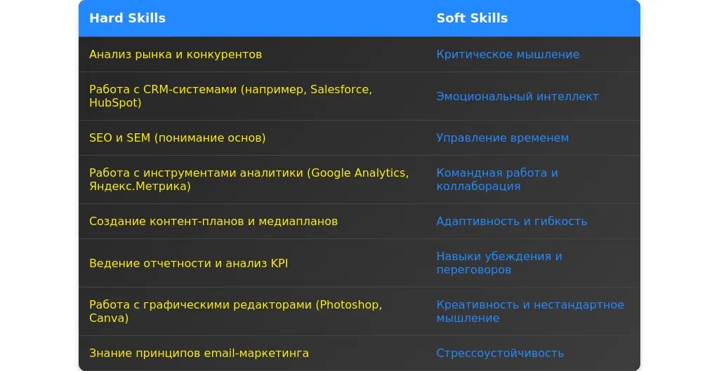 При анализе вакансии для позиции помощника в отдел маркетинга важно выделить ключевые требования, которые делятся на обязательные и желательные. Обязательные требования — это те, без которых кандидат не будет рассмотрен, например, знание инструментов аналитики (Google Analytics, Яндекс.Метрика) или опыт работы с контентом. Желательные требования — это дополнительные навыки, которые повышают шансы на успех, например, знание английского языка или опыт работы с CRM-системами.