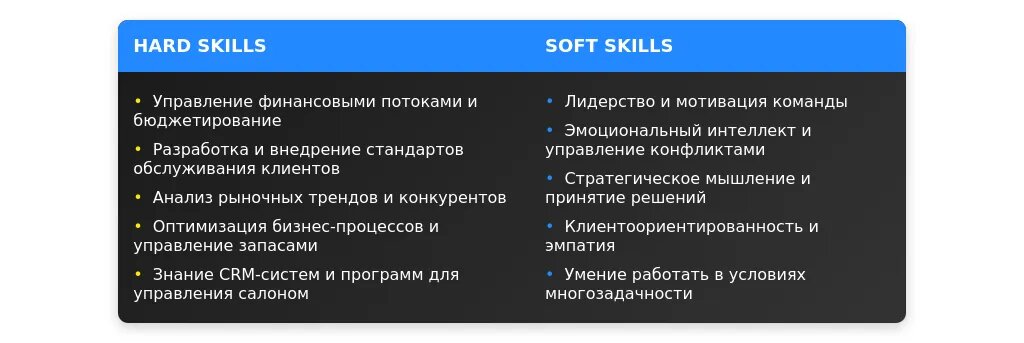 Пример 1: Вакансия требует опыта управления салоном красоты с оборотом от 5 млн рублей в месяц. Здесь ключевое требование — опыт управления крупным салоном.