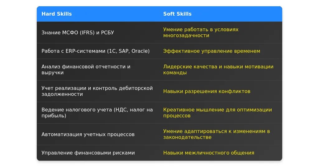 - Указывайте специализированные навыки (например, МСФО или международный налоговый учет).