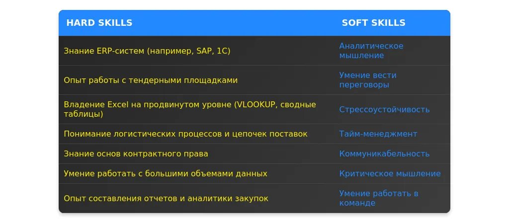 Ключевые фразы: "ведение переговоров", "анализ рынка поставщиков", "работа с договорами", "оптимизация закупочных процессов".