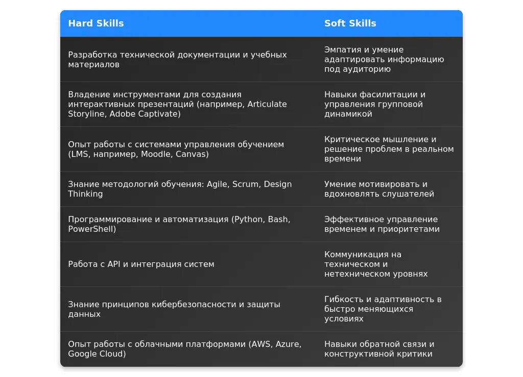 Soft skills помогают эффективно взаимодействовать с коллегами и обучаемыми. Для технического тренера ключевыми являются коммуникативные и организационные навыки.