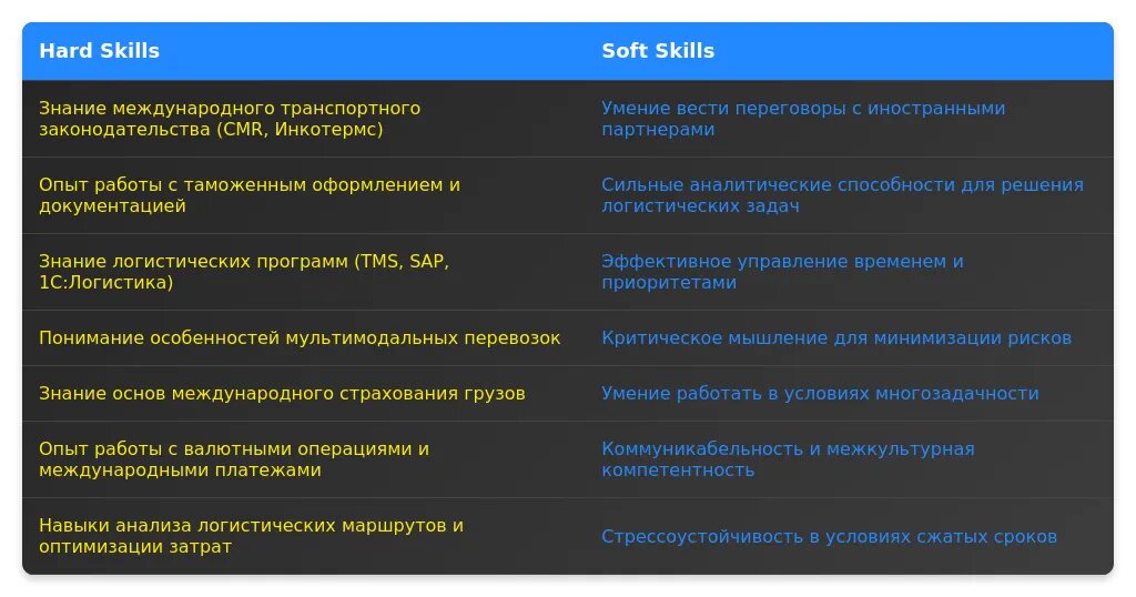 ✅ Знание основ логистики и международных перевозок, готовность к обучению