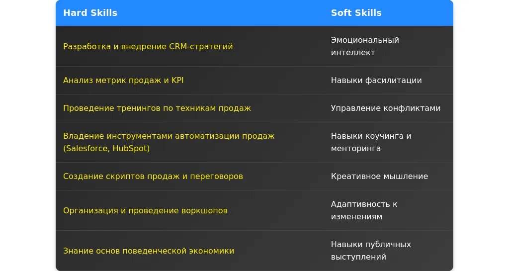 Как подтвердить наличие soft skills: Используйте примеры из опыта работы. Например: "Разработал и внедрил программу обучения, которая повысила эффективность продаж на 20%."