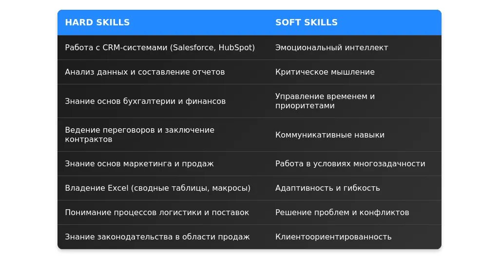 После адаптации: "Опыт работы с CRM-системами (Salesforce, HubSpot), продвинутые навыки Excel для анализа данных, английский язык (Upper-Intermediate)."