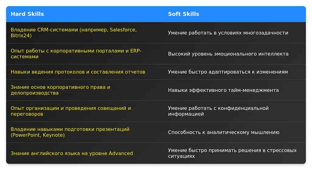 Пример 2: Упоминание "поддержка генерального директора в стратегических инициативах" подразумевает, что секретарь будет участвовать в планировании и координации проектов.