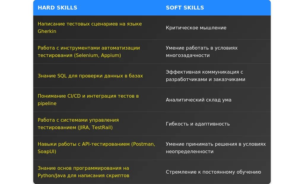 - Коммуникативные навыки: эффективное взаимодействие с разработчиками для ускорения устранения ошибок.