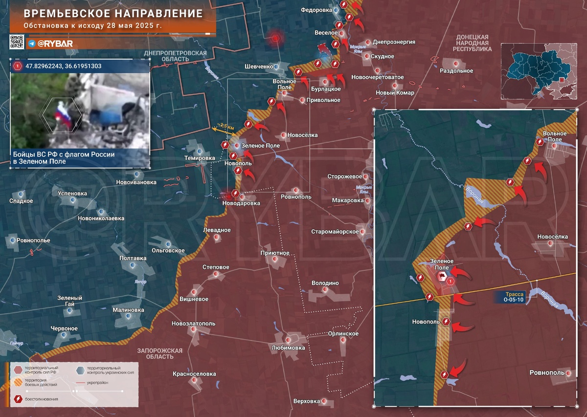 Сегодня объявлено об освобождении еще одного населенного пункта. Новополь. Это ДНР, Времьевское направление. Отличились части группировки войск «Восток». Новополь — село в Волновахском районе бывшей Донецкой области. Расположено на стыке границ ДНР, Запорожской и Днепропетровской областей. На других участках фронта заслуживает внимание информация о том, что наши практически полностью освободили Часов Яр. Осталось лишь несколько очагов сопротивления. Ждем хороших новостей. Да здравствует русская армия! Да здравствует русский солдат!