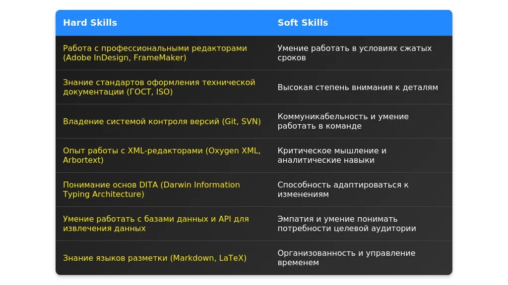 Перегруппируйте навыки, чтобы на первом месте были те, которые соответствуют вакансии. Например, если вакансия требует знания LaTeX, переместите этот навык в начало. Используйте ключевые слова из вакансии: "редактирование технической документации", "знание ГОСТов", "работа с API".