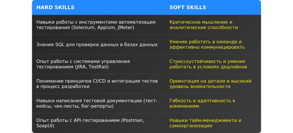 После адаптации: "Selenium (опыт автоматизации тестирования), Postman (тестирование API), SQL (работа с базами данных), Python (написание скриптов)."
