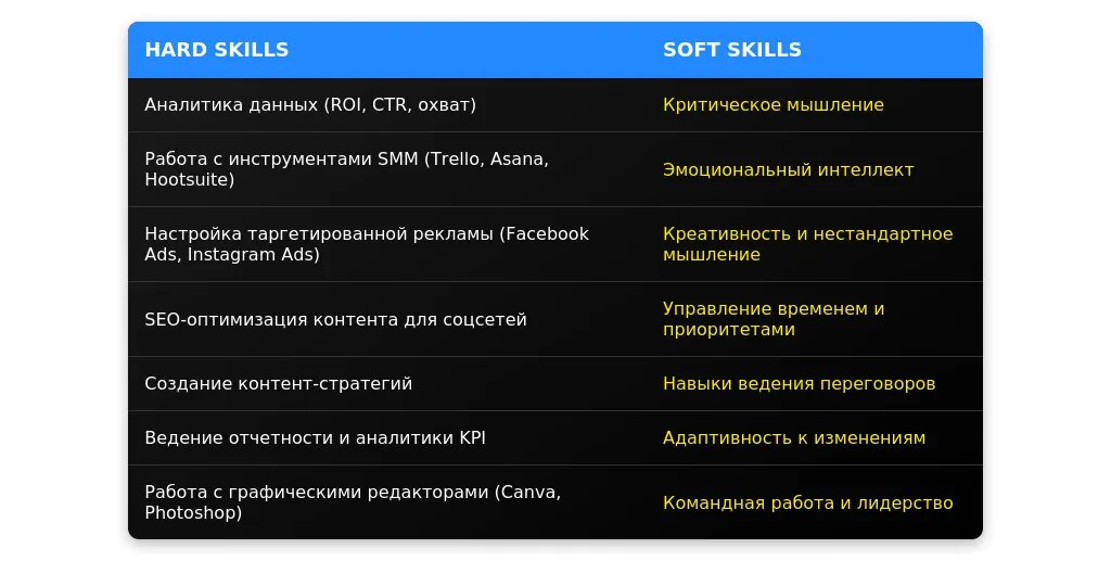 - Профессиональные достижения: Укажите успешные кейсы, например, увеличение подписчиков на 50% за 3 месяца.