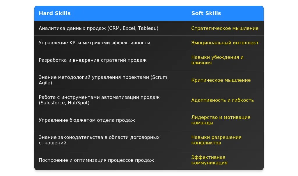 После адаптации: "Управление командой, внедрение CRM, аналитика продаж."