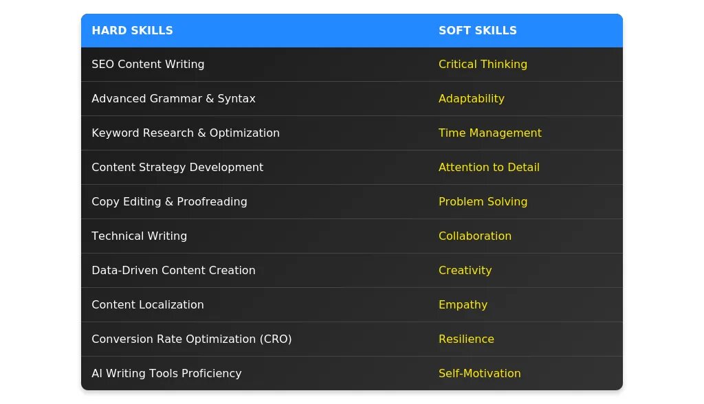 Soft skills — это личные качества, которые помогают эффективно работать в команде и справляться с задачами. Вот топ-10 важных soft skills для копирайтера: