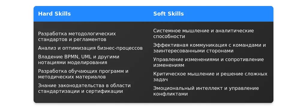 Анализ: обязательное требование — опыт внедрения методологий, желательное — работа в крупных проектах.