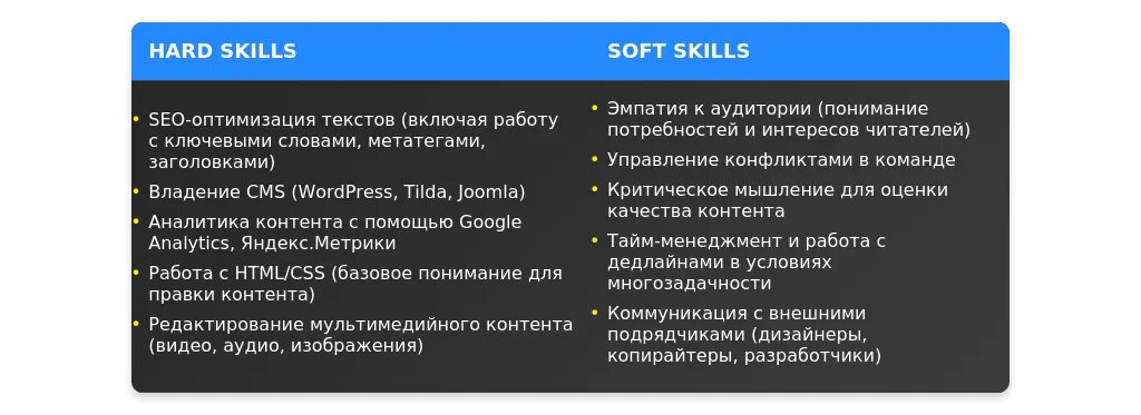 После адаптации: "Редактирование и публикация контента, работа с большими объемами данных, создание SEO-оптимизированных текстов."