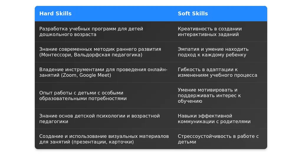 Soft skills — это личные качества, которые помогают эффективно взаимодействовать с детьми, родителями и коллегами.