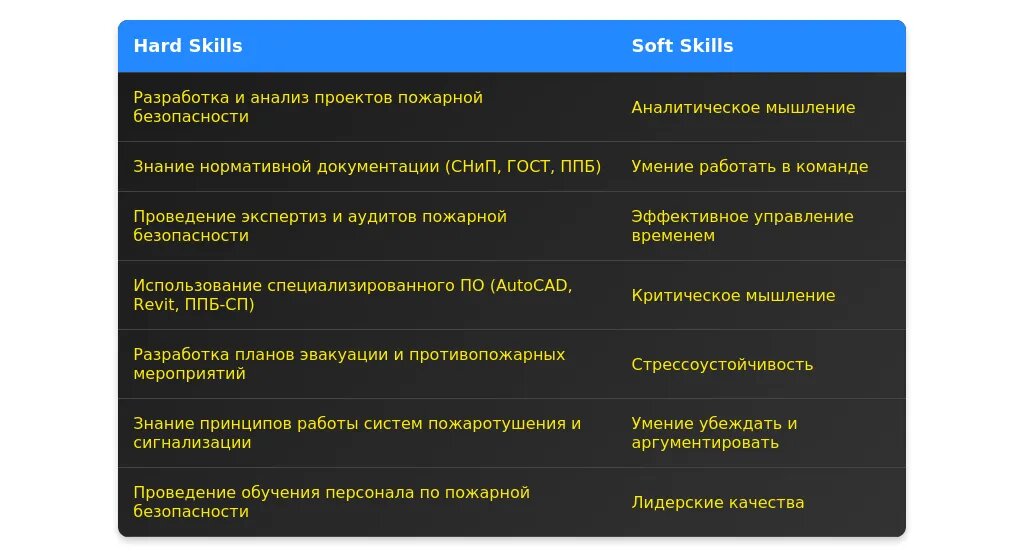 Анализ требований вакансии для инженера по противопожарной безопасности