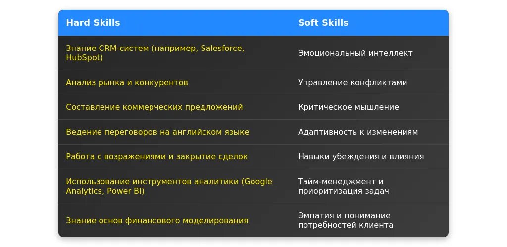 Акцент на навыках: работа с CRM, базовые навыки ведения переговоров.