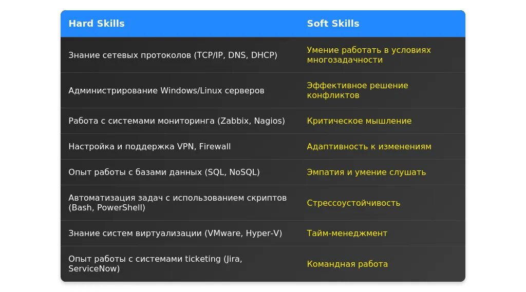 После: Python, Linux, базы данных (MySQL, PostgreSQL), системы мониторинга (Zabbix, Grafana).