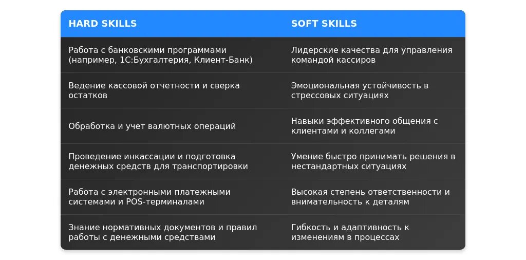 Пример 3: Адаптация навыков: "Работа с кассовым оборудованием, знание банковских продуктов, опыт работы с CRM-системами."