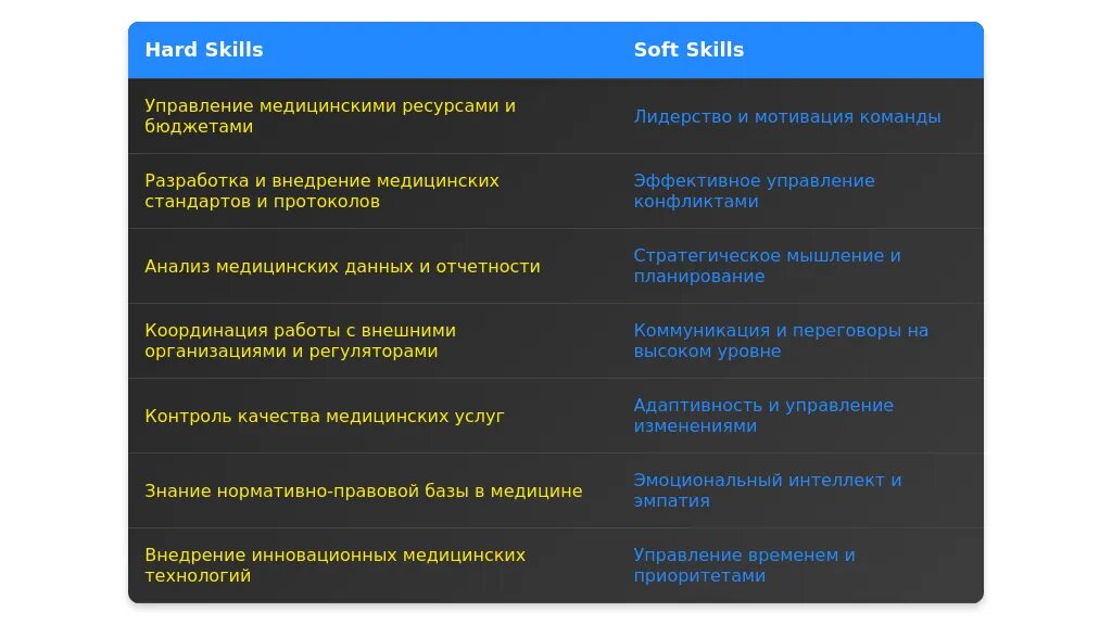 После: "Коммуникационные навыки, управление медицинским персоналом."