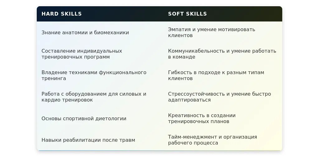 До: "Навыки работы в тренажерном зале, знание анатомии."
