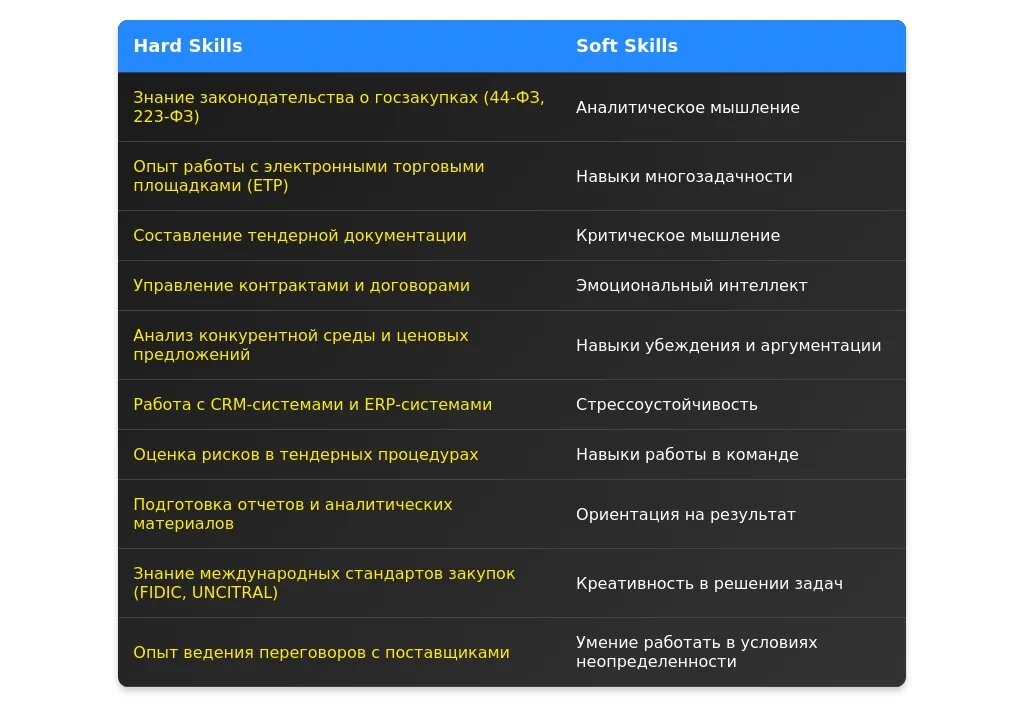 После адаптации: "Глубокое знание 44-ФЗ и 223-ФЗ, опыт составления тендерной документации и технических заданий."