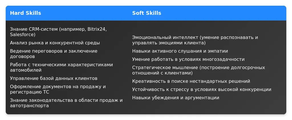 В 2025 году работодатели ожидают от менеджеров по продажам новых автомобилей не только базовых навыков, но и специализированных компетенций. Вот что особенно ценится: