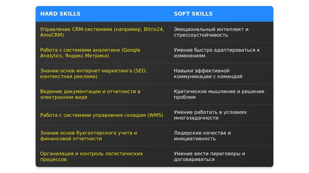 - Слишком общие формулировки (например, "Умение работать с людьми").