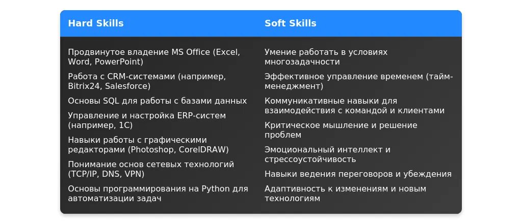 После: "1С:Управление торговлей, MS Excel (продвинутый уровень), навыки работы с CRM."