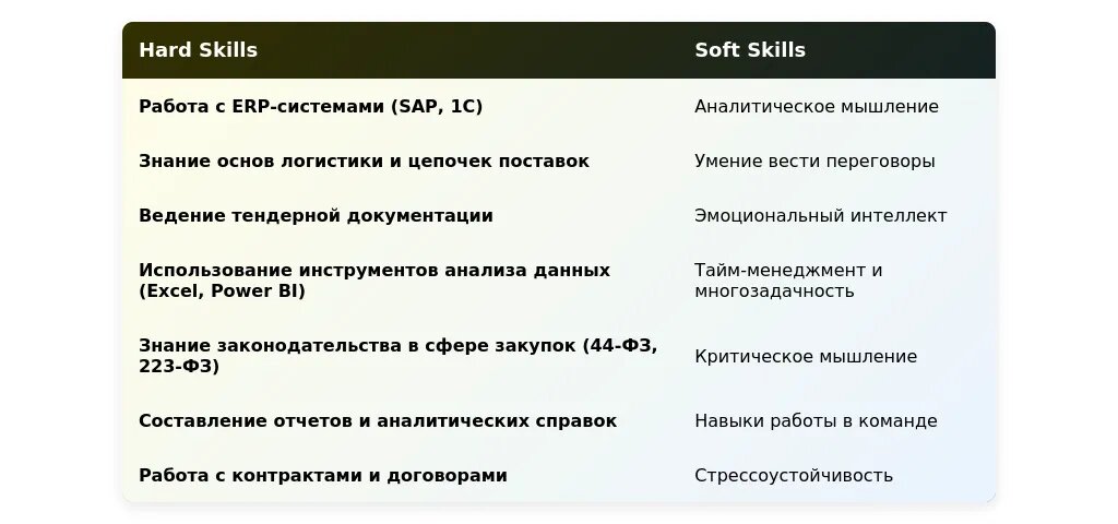 Скрытые требования часто можно выявить из описания задач. Например, если в вакансии упоминается необходимость "оптимизации процессов закупок", это может указывать на потребность в аналитических навыках. Также обратите внимание на корпоративные ценности компании, чтобы понять, какие личные качества (организованность, стрессоустойчивость) могут быть важны.