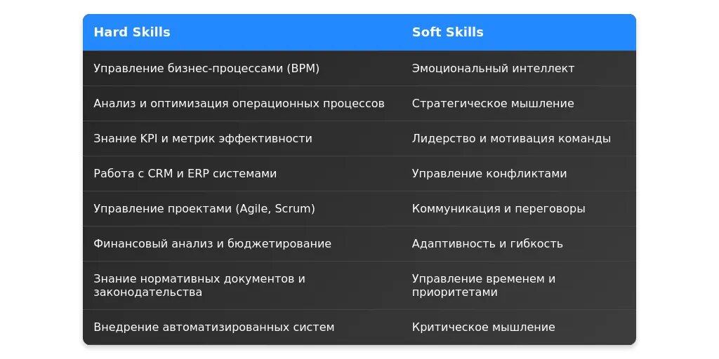 Работа с ключевыми словами: включите в раздел навыков термины, которые часто встречаются в описании вакансии, такие как "операционная эффективность", "управление процессами".