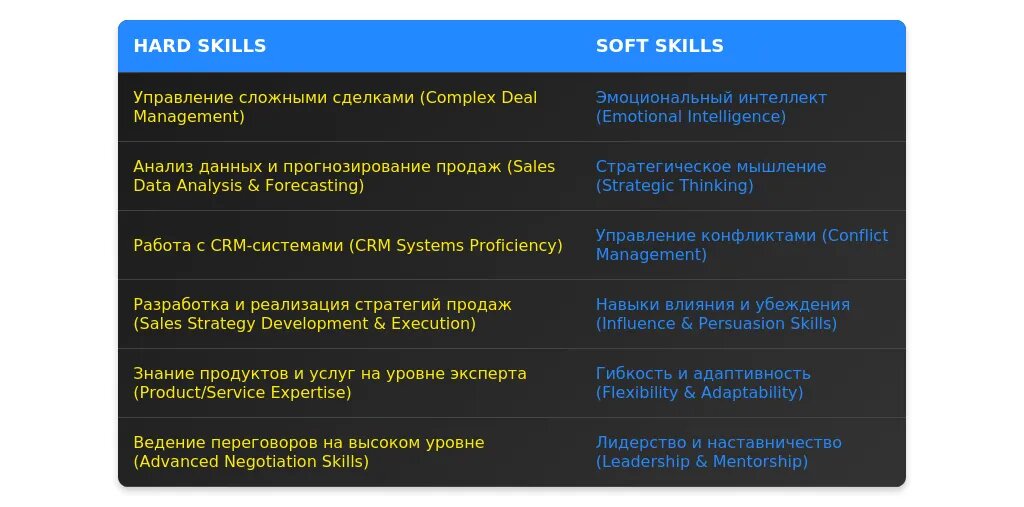 После адаптации: "Управление ключевыми клиентами, работа с CRM-системами (Salesforce, Bitrix24), стратегическое планирование продаж."