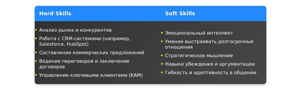 После адаптации: "Знание CRM-систем (Salesforce, HubSpot), опыт привлечения корпоративных клиентов, навыки ведения переговоров."