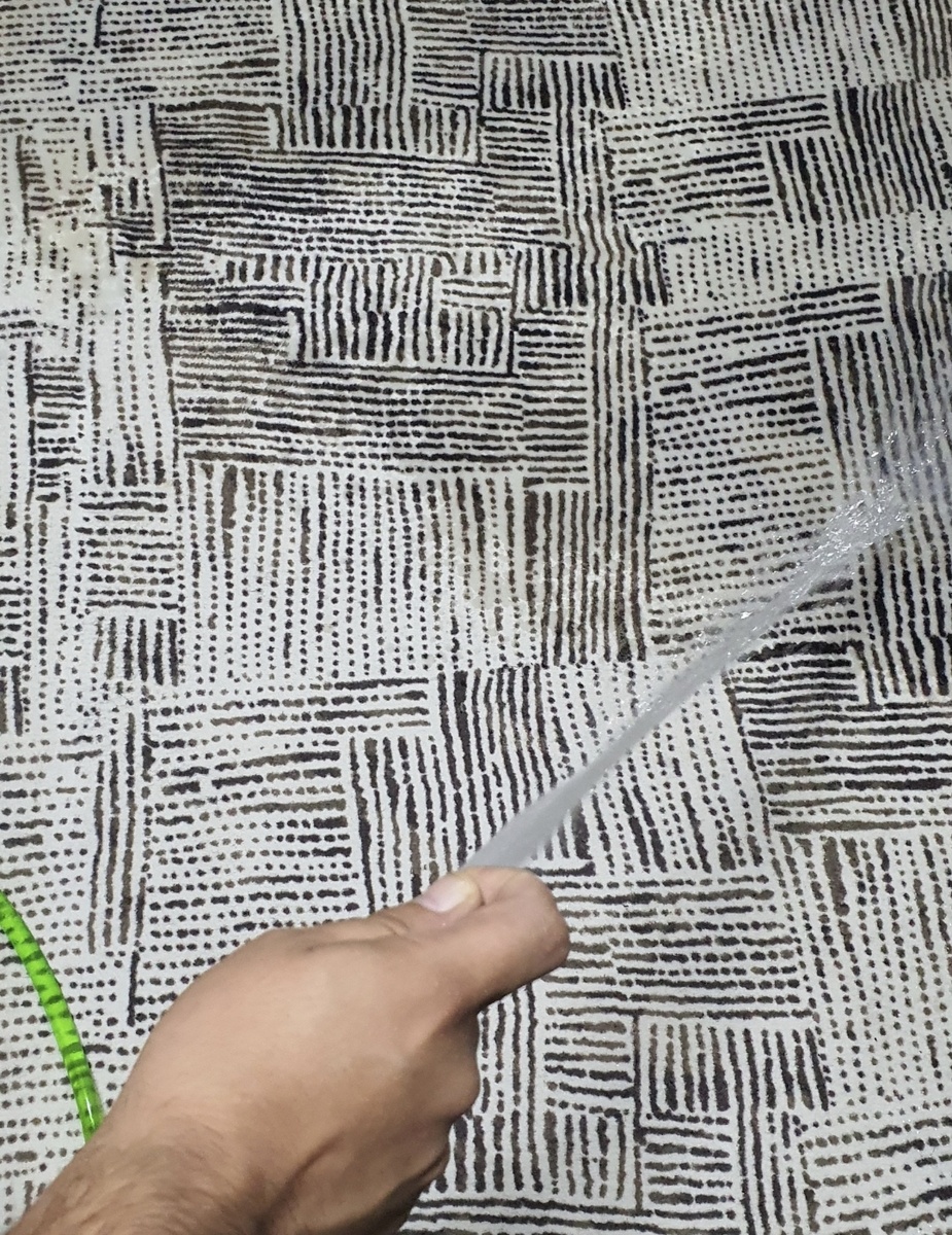 Затем ковёр оставляют в покое минут на 15- 30, в зависимости от степени загрязнения - чем грязное ковёр, тем больше времени он пьёт Deterjan (дэтэржан) - моющие средства. Даже самые старые загрязнения растворяются из глубины ворса и выходят наружу, после такой процедуры.