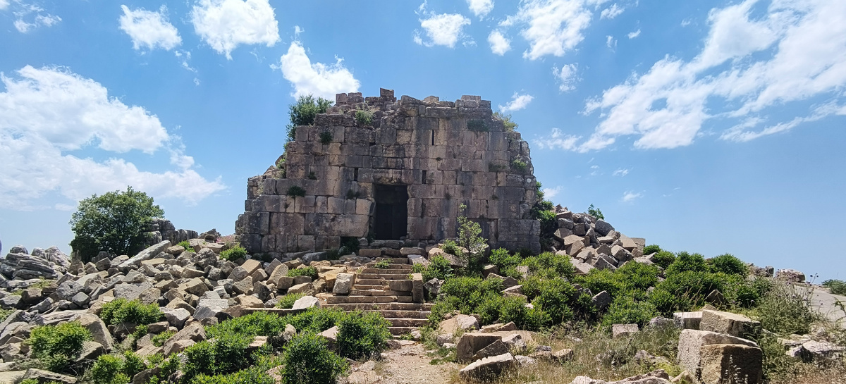 В него можно залезть внутрь. Он был еще больше, но верхний этаж или этажи были разрушены землетрясениями. В принципе, можно вернуть на место.
