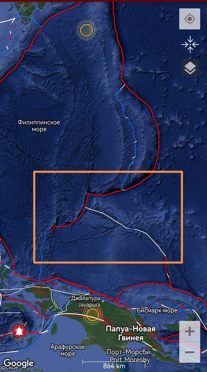 Юго-восток/восток Филиппинской плиты и север Каролинской плиты. Здесь есть вероятность землетрясения М6-7+ в течение 9 дней ==== Southeast/east of the Philippine Plate and North Caroline Plate. There is a possibility of an M6-7+ earthquake within 9 days.