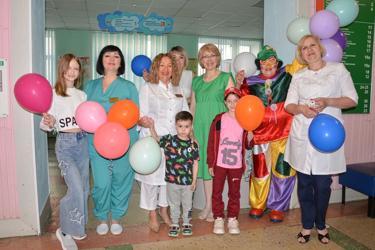 В детской стоматологии героев дня встречали с подарками. Добрый клоун вручал ребятам разноцветные воздушные шарики и наклейки.