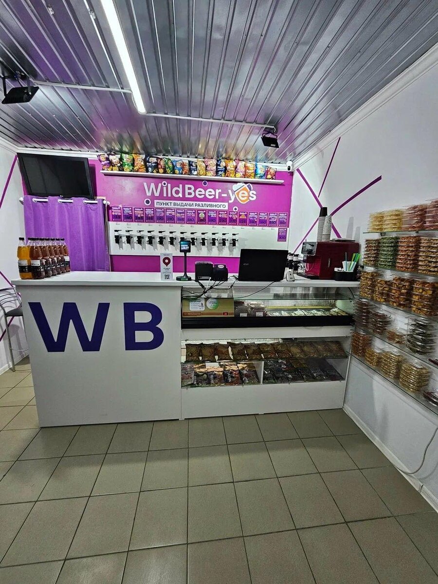 В России появилась целая сеть пунктов выдачи разливного Wildbeer-yes. Узнаваемые цвета и символику Wildberries используют для точек разлива пива. Точки можно встретить в Севастополе, а также в Сибири и Приморье. У них даже шторки такие же, как у примерочных в ПВЗ. Я бы совместила их с пунктами выдачи WB😊 Зашла за обновкой и тут же "обмыла" 👍 Как вам такой креативный ход? Делитесь в комментариях.