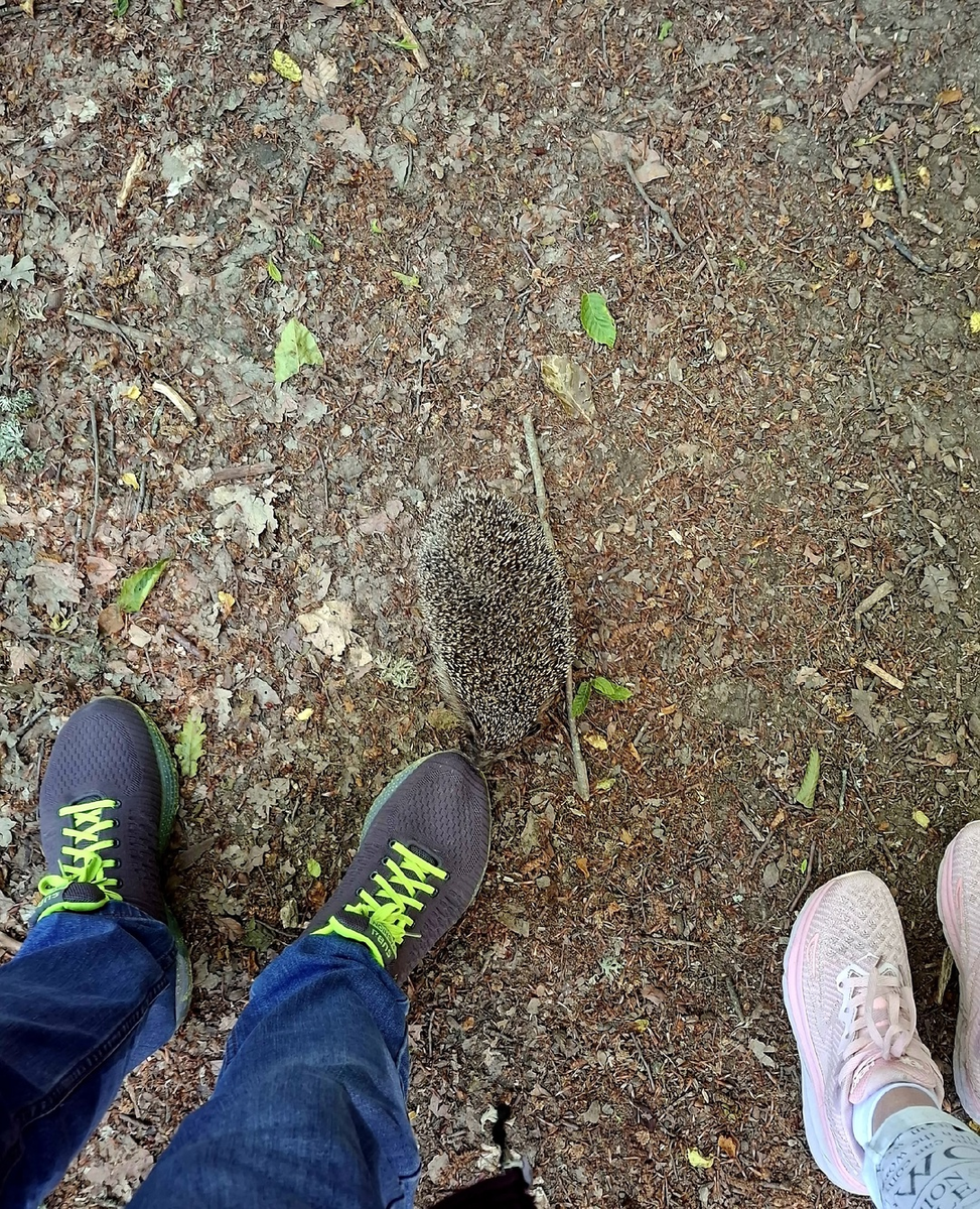 Идём мы по горно-лесной дороге, а навстречу нам семенит ёж. Смело так бежит прямо посреди дороги, словно и нет нас вовсе. Ежи довольно пугливы, а этот не боится нас. Мы остановились, а он даже не замедлился. Подбежал ко мне, обнюхал обувь, задержался на мгновение и заторопился дальше. Как будто и не было нас вовсе на его пути.