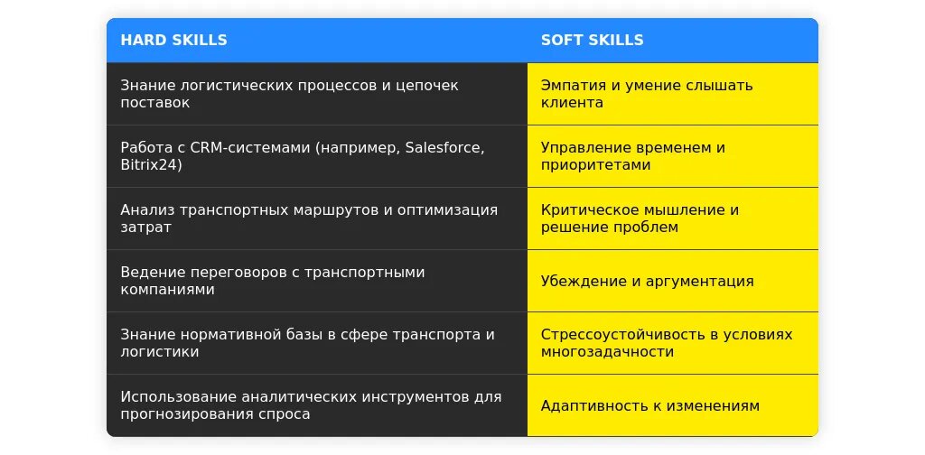 - Ключевые навыки, связанные с продажами транспортных услуг.