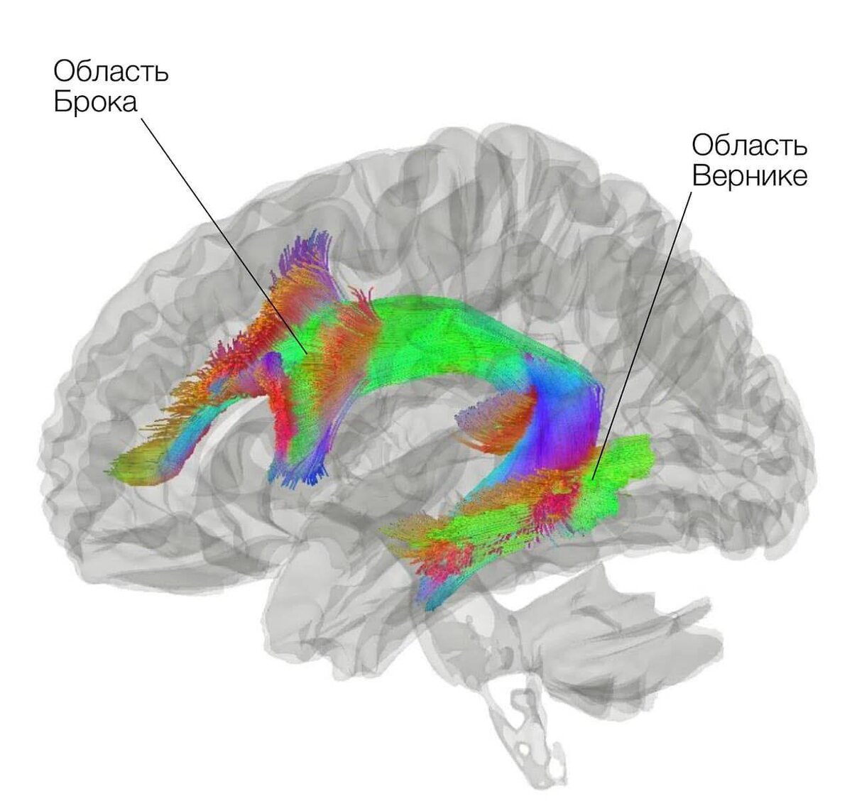 Дугообразный пучок соединяет область Брока и область Вернике, образуя систему, отвечающую за речь