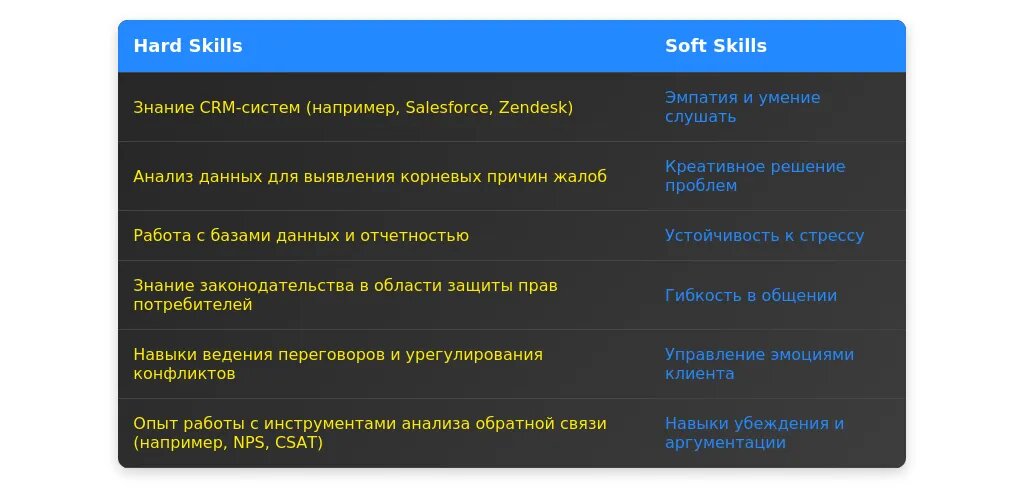 После адаптации: "Работа с возражениями, решение конфликтных ситуаций, знание CRM-систем (Salesforce, Bitrix24), стрессоустойчивость."
