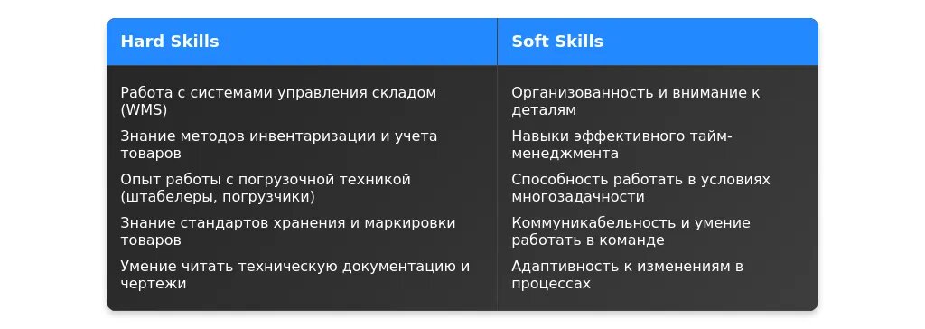 Пример 1: "Опыт работы с системой 1С: Управление складом — обязательно." Здесь ключевое требование — знание 1С.