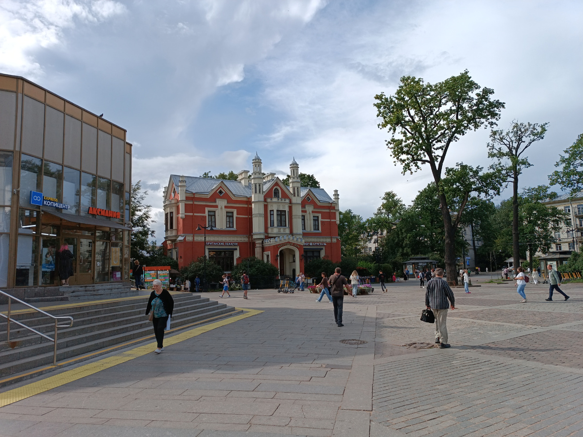 А мы подходим к одной из интереснейших достопримечательностей ,Каменноостровскому театру он был построен был построен в 1827 году по проекту архитектора С. Л. Шустова. Изначально задумывался как временная летняя сцена для выездных гастролей, но остался и стоит по сей день ,хотя и деревянный! В 1935 году ему присвоен статус архитектурного памятника.