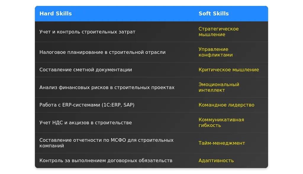 - какие актуальные навыки главного бухгалтера по строительству важны;